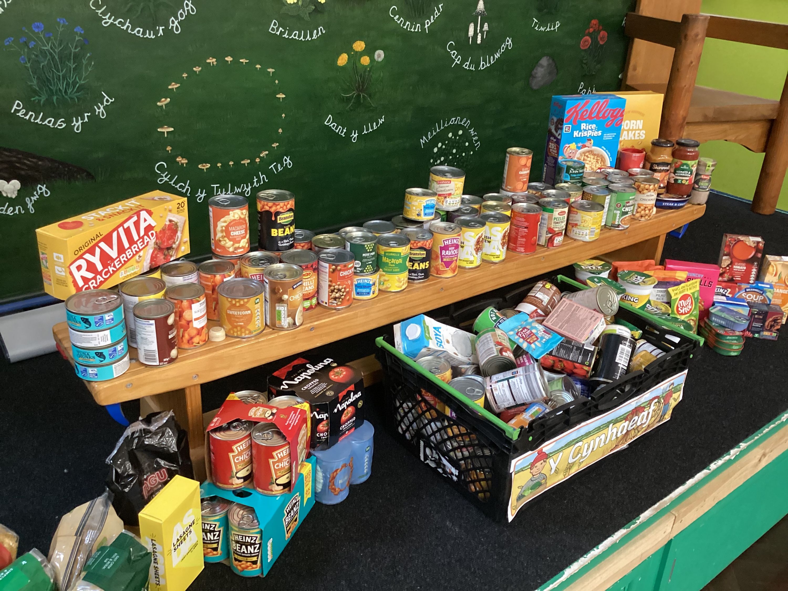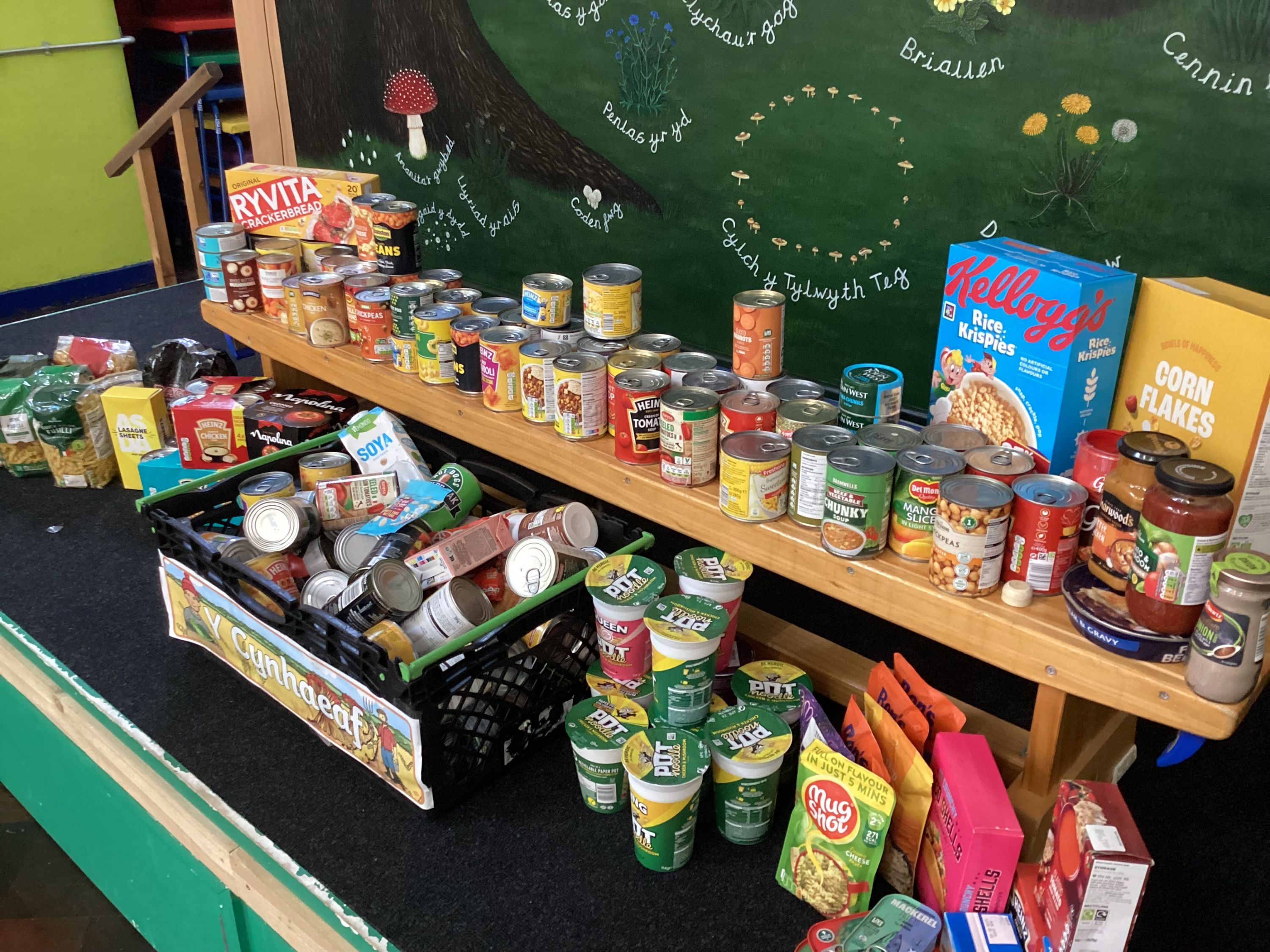 Hoffem anfon diolch yn fawr iawn i gymuned yr ysgol am gyfrannu eitemau ar gyfer Gŵyl y Cynhaeaf eleni.  Cafodd y cyfoeth o fwyd a roddir i'r ysgol ei anfon at fanc bwyd lleol i gefnogi'r gymuned leol yn dilyn ein gwasanaeth diolchgarwch.